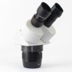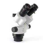 The Microtec HM-4 Zoom stereo microscope has a zoom ratio range of 6.4-1 with detent (click stops). Giving a possible magnification range of 3.5x-270x. It also has an integrated phototube. A selection of stands of either transmitted or reflected light as well as standalone light sources are available as are supplementary front lenses and eyepieces.